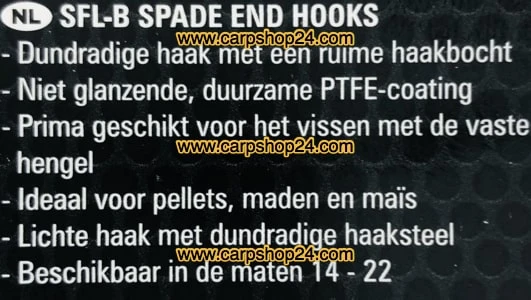 De SFL-B heeft dezelfde vorm als onze populaire GPM-B Spade End-haak. Het heeft echter een iets dunnere draaddikte waardoor het perfect is voor zowel commerciële als natuurlijke zilvervissen.